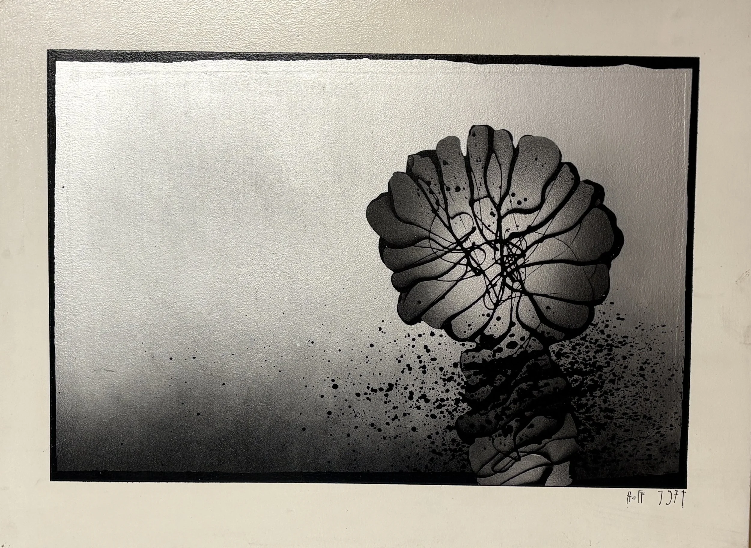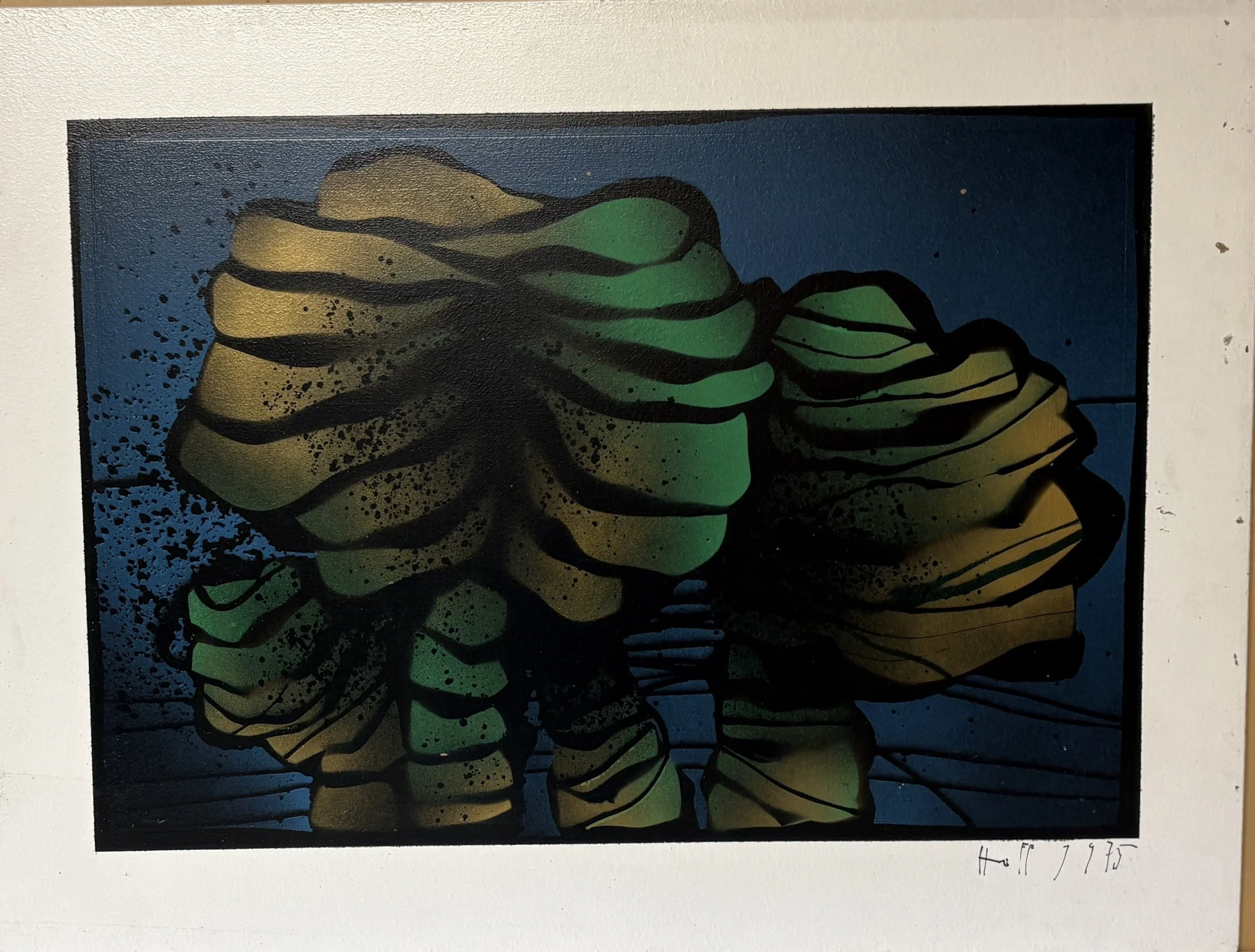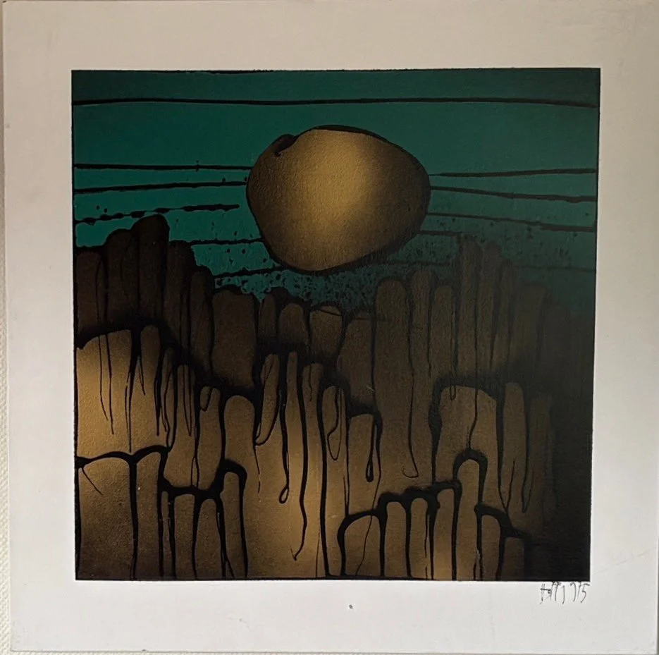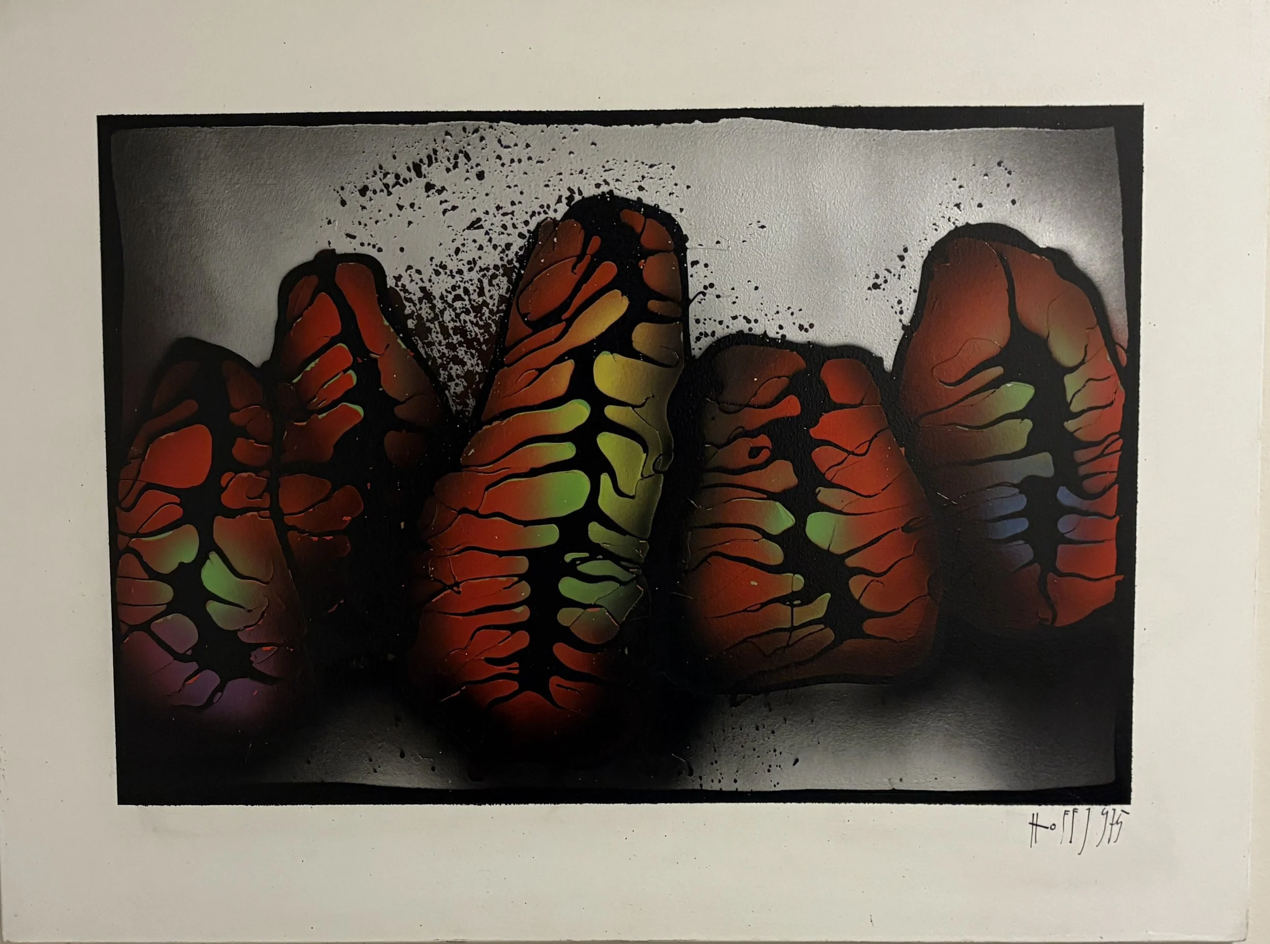 Også et verk jeg tok med hjem da jeg arvet. Ikke vært lagt ut til salgs tidligere. Bortsett fra bakgrunnsfarge, har det klare likhetstrekk med Nasjonalmuseets «Sprukken frukt».