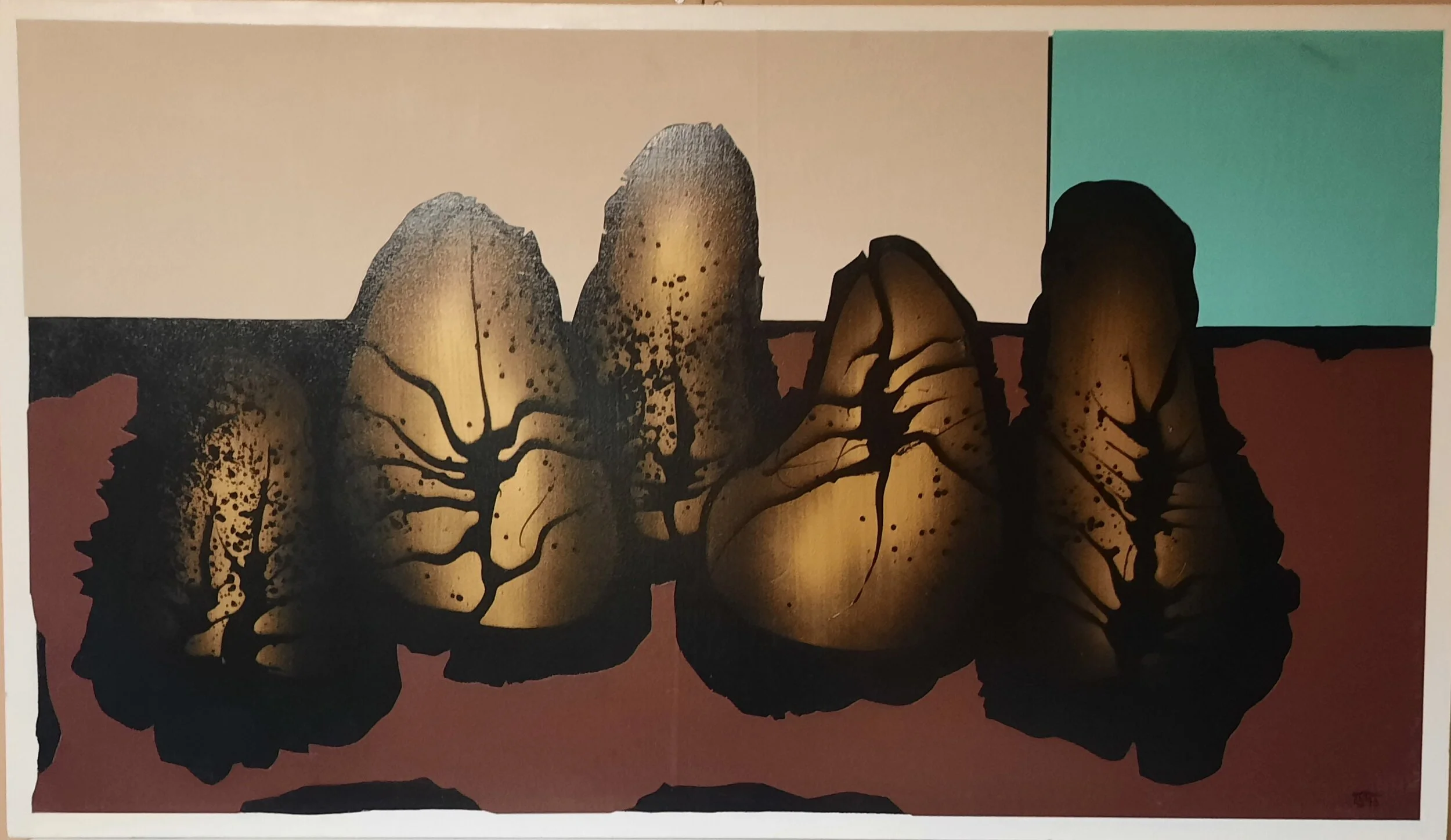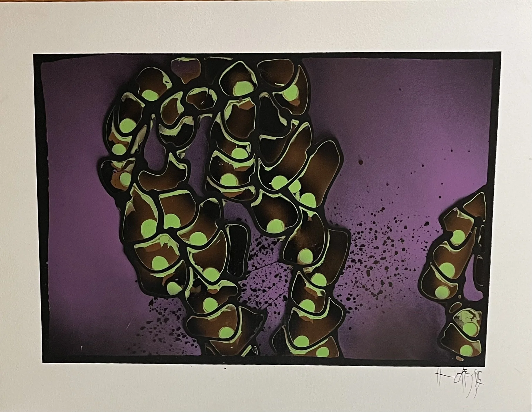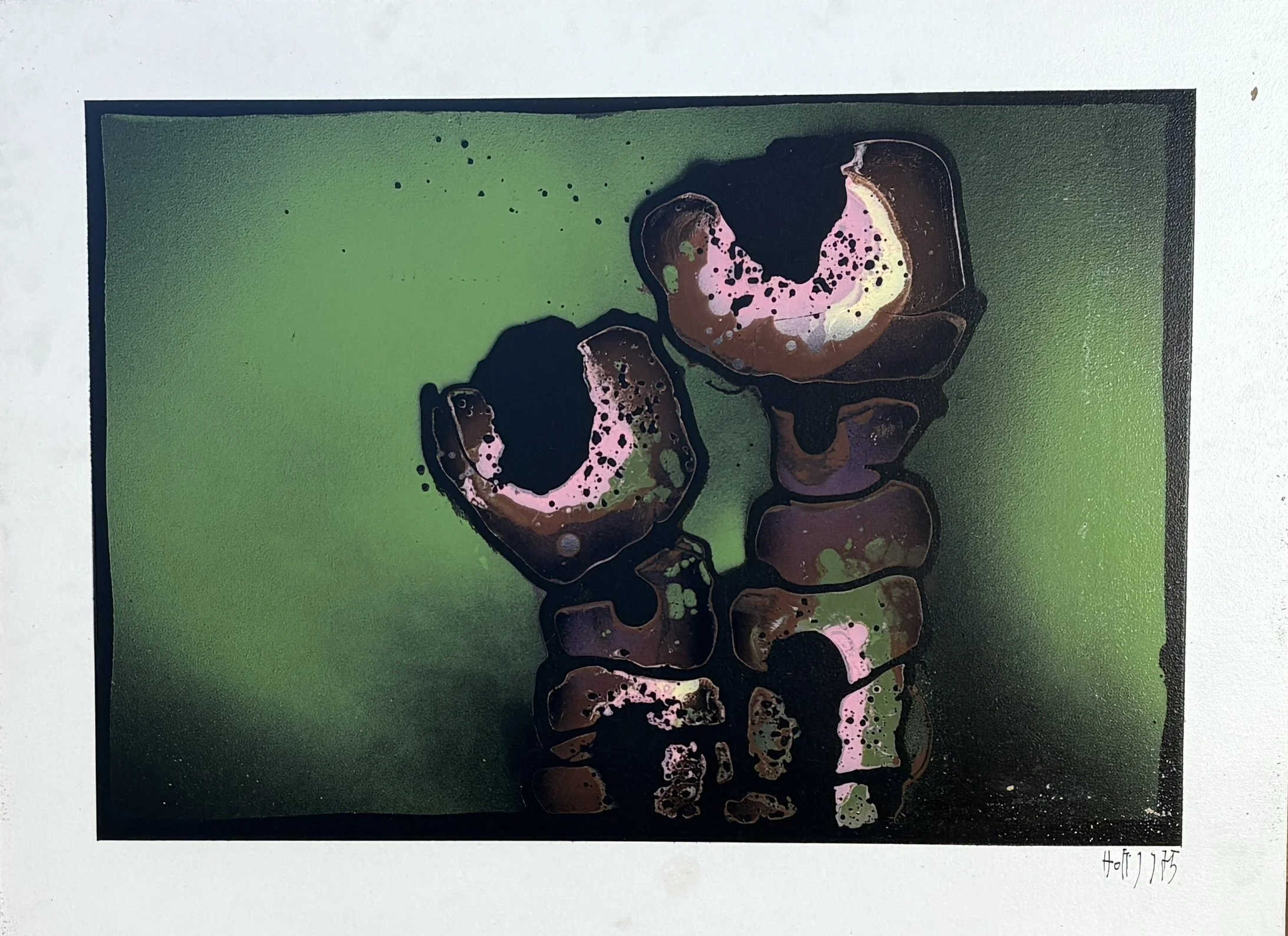 Også et verk jeg tok med hjem da jeg arvet. Ikke vært lagt ut til salgs tidligere. Bortsett fra bakgrunnsfarge, har det klare likhetstrekk med Nasjonalmuseets «Sprukken frukt».